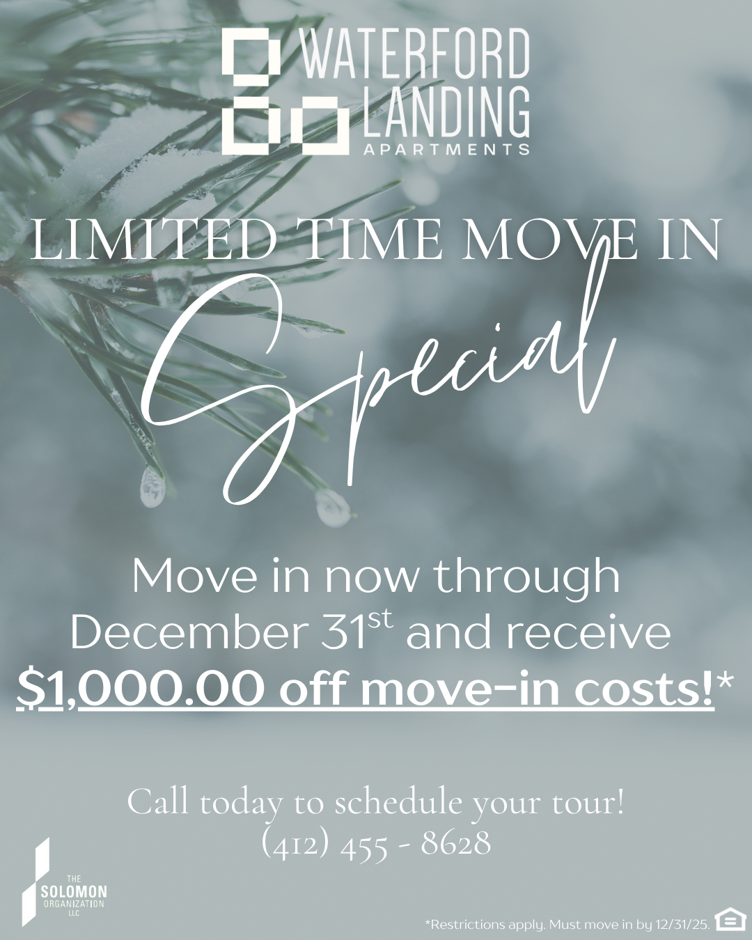 Move in by December 31st and save $1,000.00 on move in costs!*